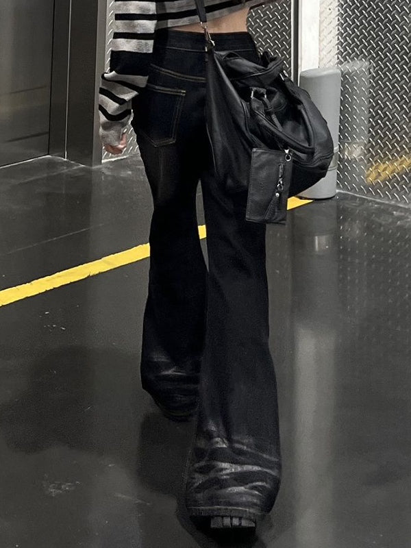2000s Black Boyfriend Flare Jeans with Faded Effect