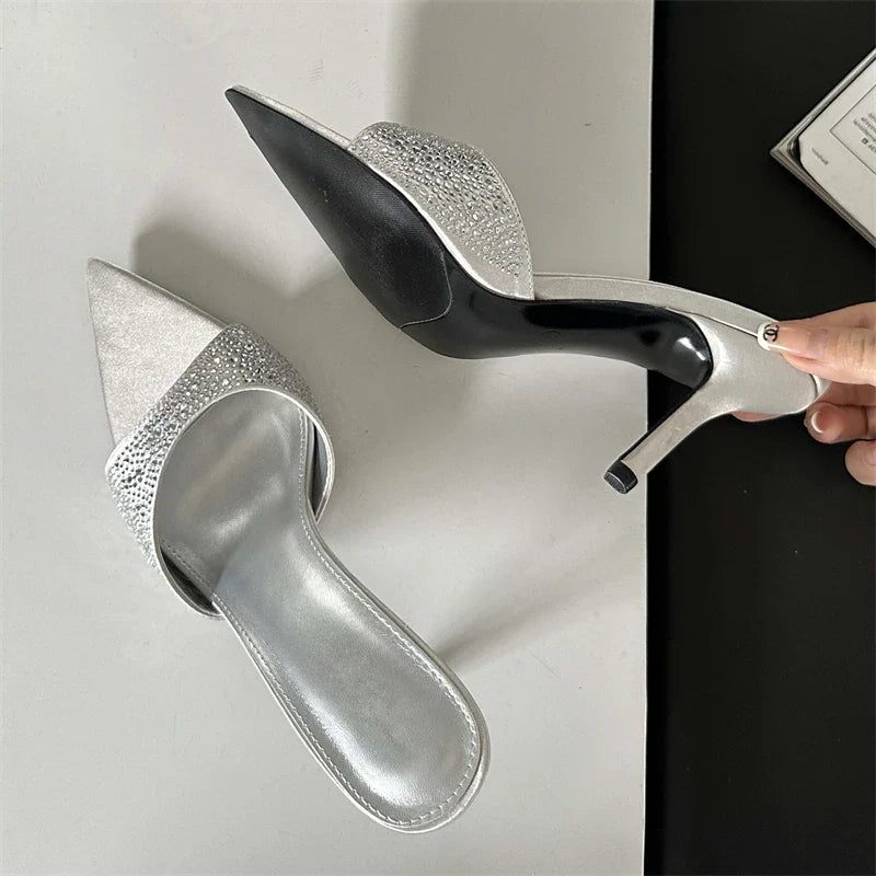 New Summer Silk Slippers Fashion Thin Mules Beach Slides Shoes Low Heel Pumps