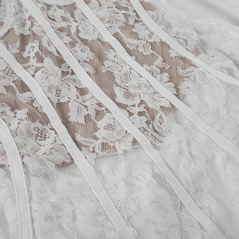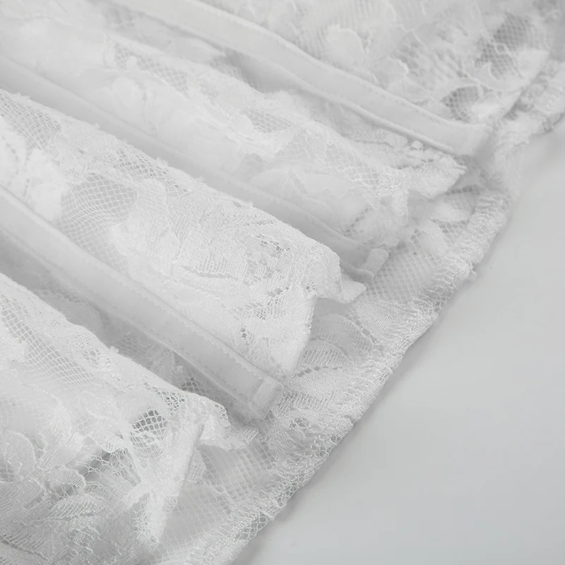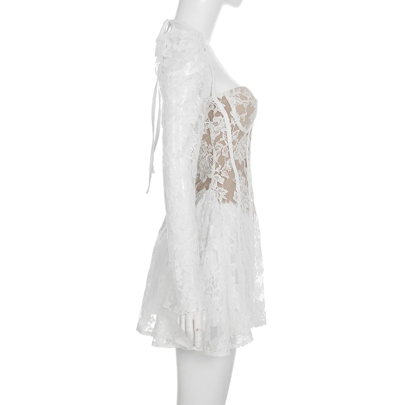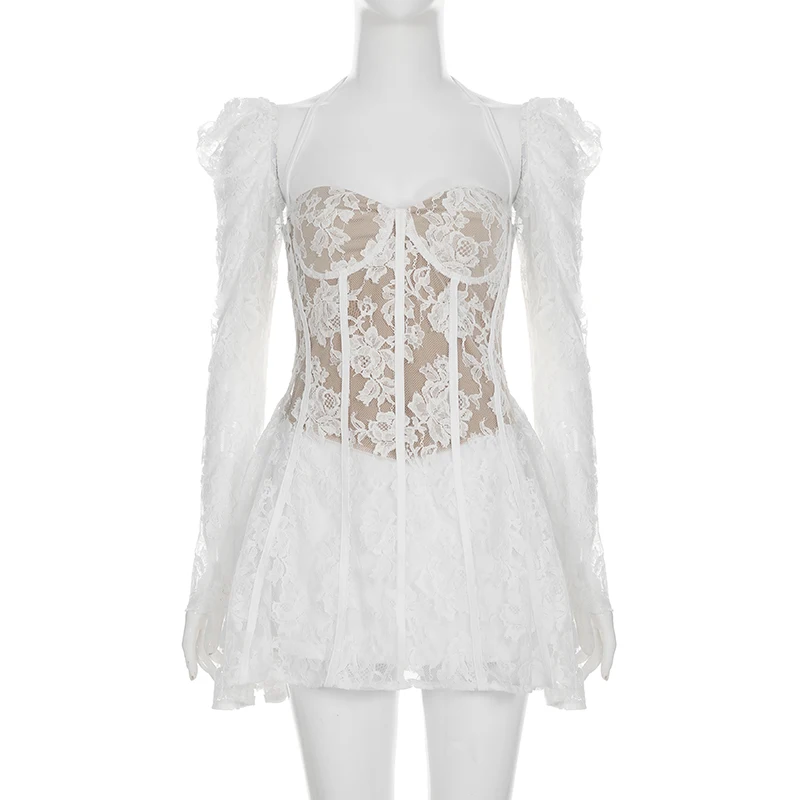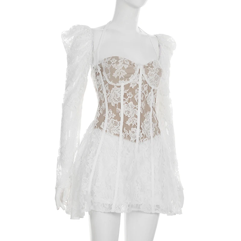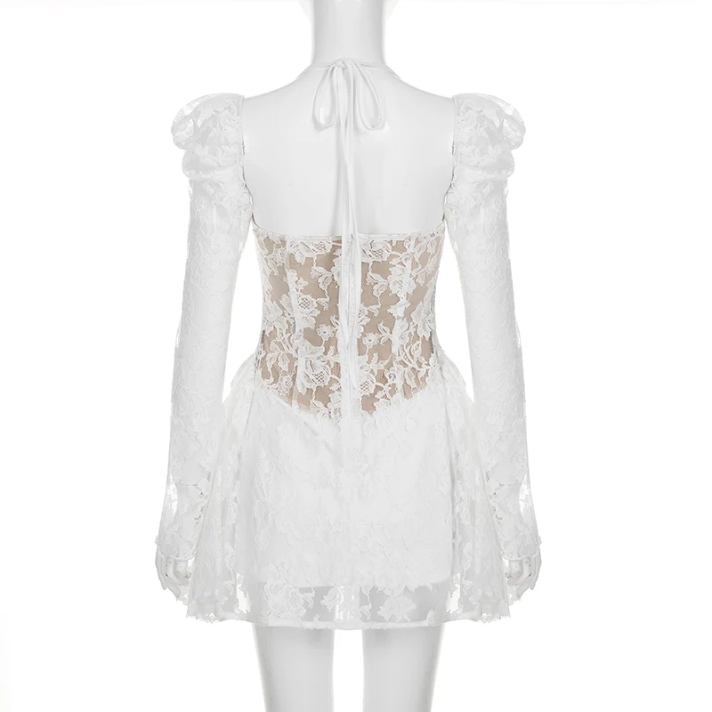 A-Line Backless Puff Sleeve Mini Lace Dress