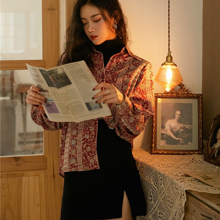 Feel the vintage vibes with Aemi's Paisley Floral Blouse! This beautiful. one of kind vintage shirt blouse gives off a timeless look with a unique. colorful pattern. Perfect for a day out or a night in. it'll make you stand out from the crowd in Victorian style! Get ready to make a statement!