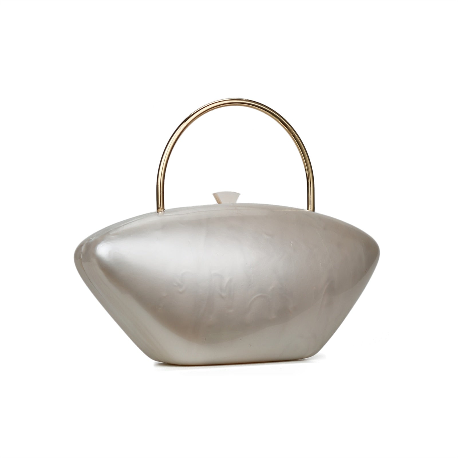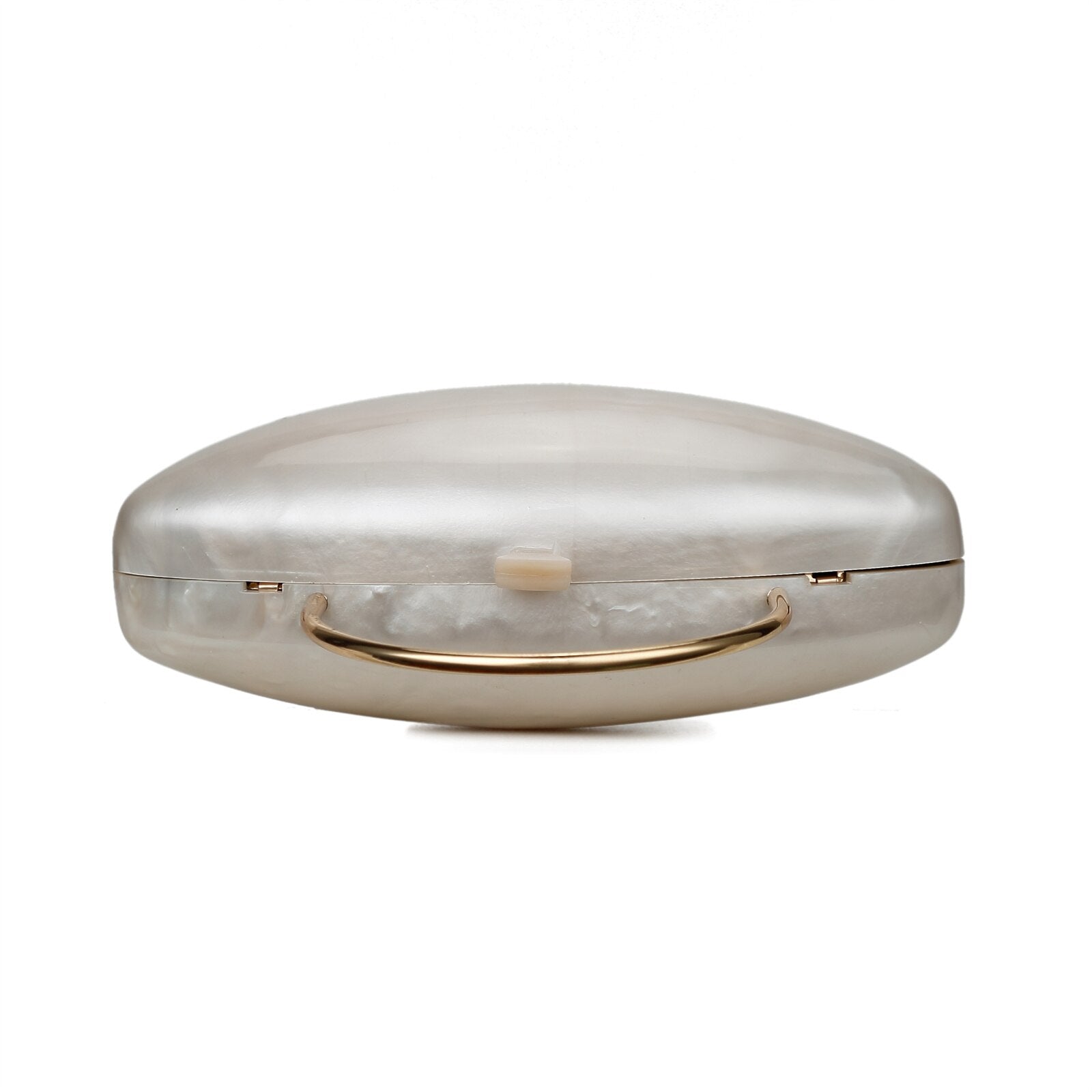 Adorn yourself for a night of sophistication with Alicja Pearlescent Acrylic Evening Bag. Expertly constructed with shimmering acrylic. this delicate bag radiates an air of finesse. Its tasteful silhouette and curvature make it an ideal addition for showcasing your poise and fashion-sense without dominating the ensemble.