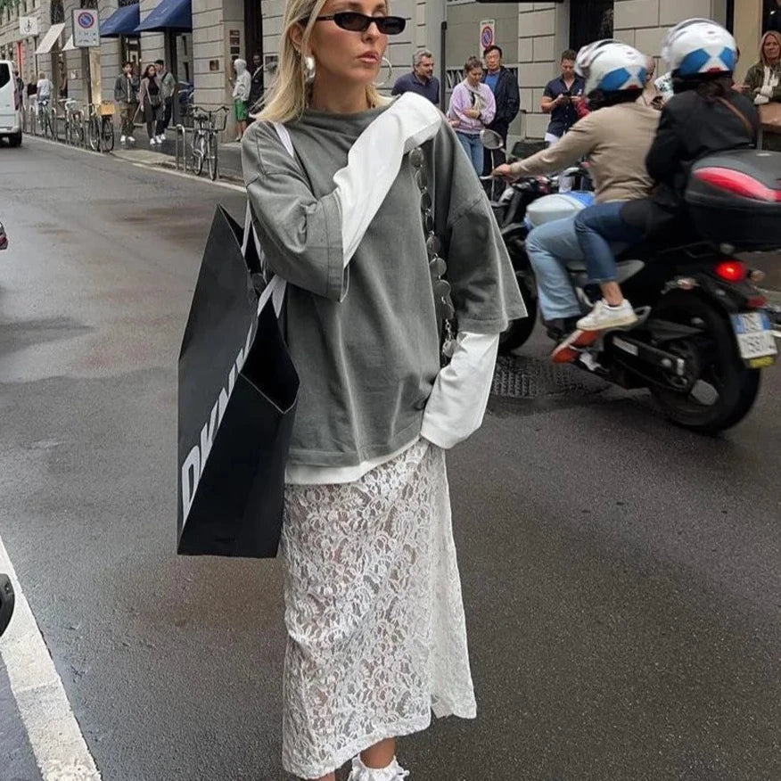 This floral lace skirt is the perfect addition to your casual wardrobe. With its unique Alita design and midi length. it adds a touch of quirky charm to any outfit. Dress it up or down. this skirt will definitely turn heads. Not lined.