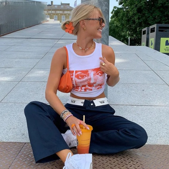 Express your punk side with Amaya graphic tank tops! These stylish high neck tanks feature bold punk graphics that will make a vibrant statement. Perfect for creating edgy and unique outfits. these tanks are a must-have for this summer.
