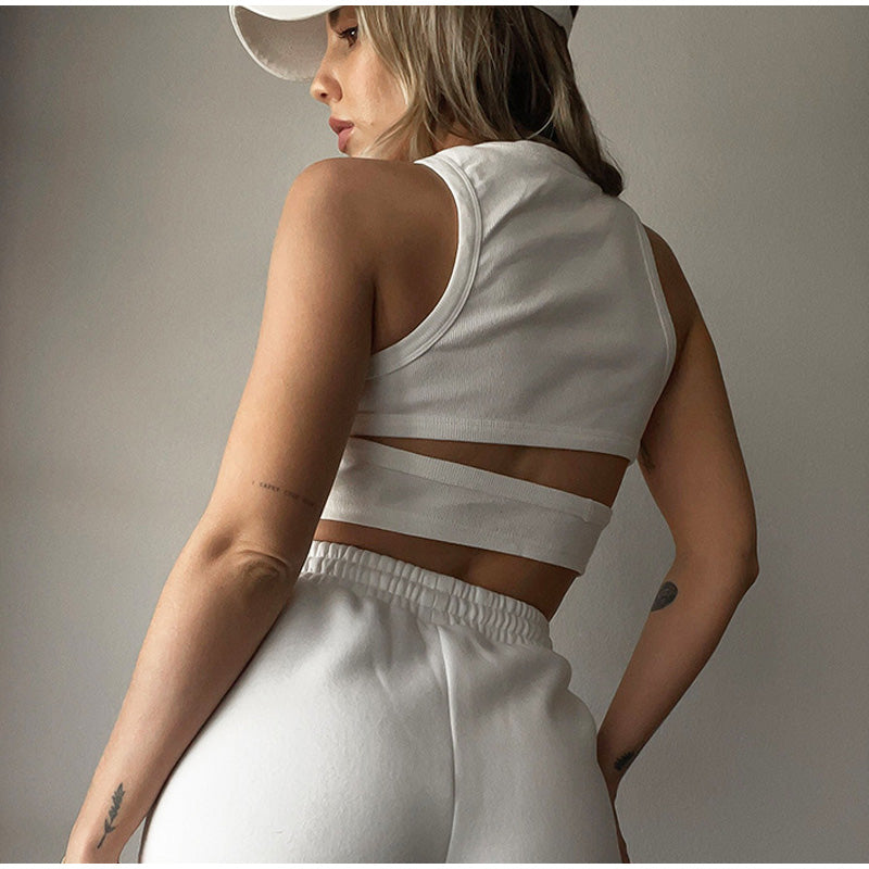 Amy Cut out Ribbed Crop Tank Top - Black or White. High neck tank tops are in! Athletic yet modern with cut out twist. these simple tops are stylish and versatile for summer and even in your workout session.