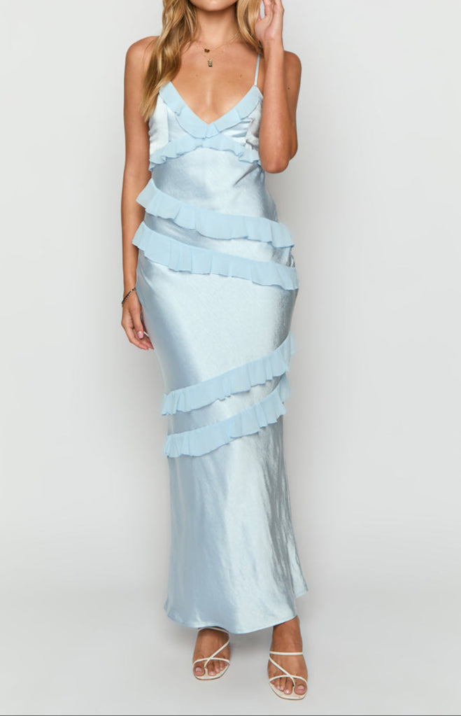 Andrea Blue Ruffle Maxi Dress