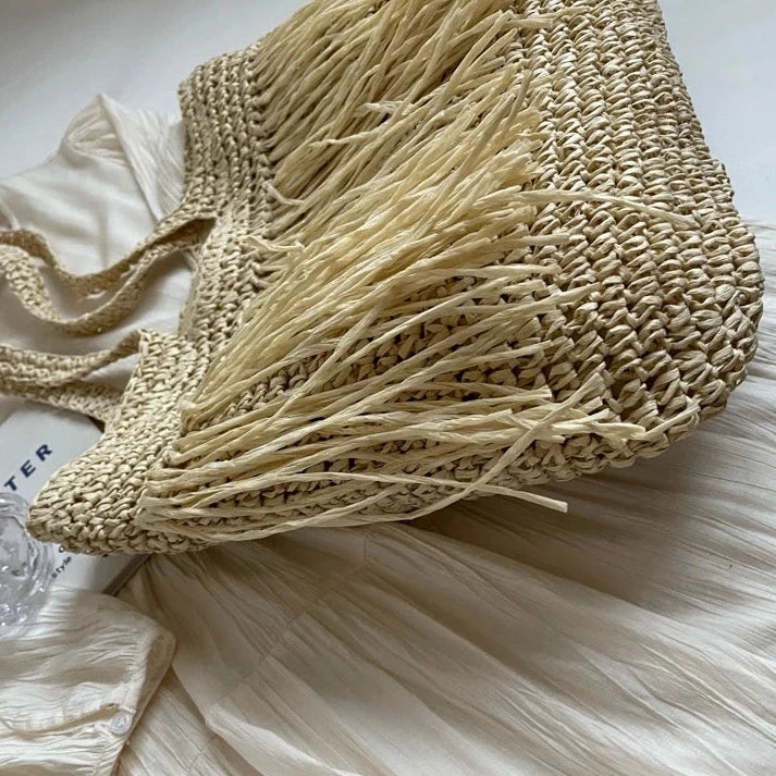 Elevate your summer style with the Andreia Long Tassel Straw Bag! Made from high-quality straw. this bag features a chic tassel design and spacious interior. perfect for carrying all your essentials. Whether you're headed to the beach or a brunch date. this bag will add a touch of bohemian luxury to any outfit.