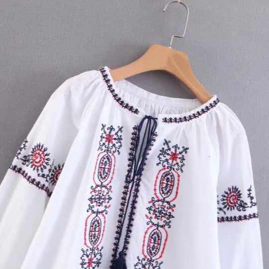 Angkasa Folk Embroidery Tassel Blouse - 3 Colors
