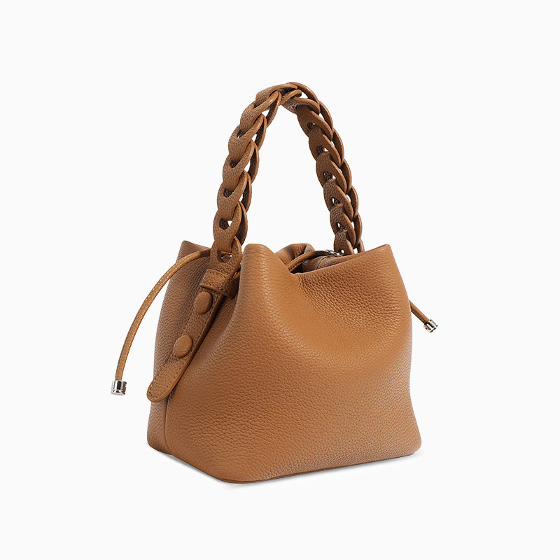 Elevate your style with the Asher Handbag. a luxurious bucket bag that redefines sophistication. Crafted from high-end materials. this stunning accessory features a beautifully braided handle that adds a touch of artisanal charm. With its stylish design and versatile functionality. this bag is perfect for any occasion. whether dressing up for a night out or adding a chic touch to your everyday look. Now available in black. dark brown. and caramel.