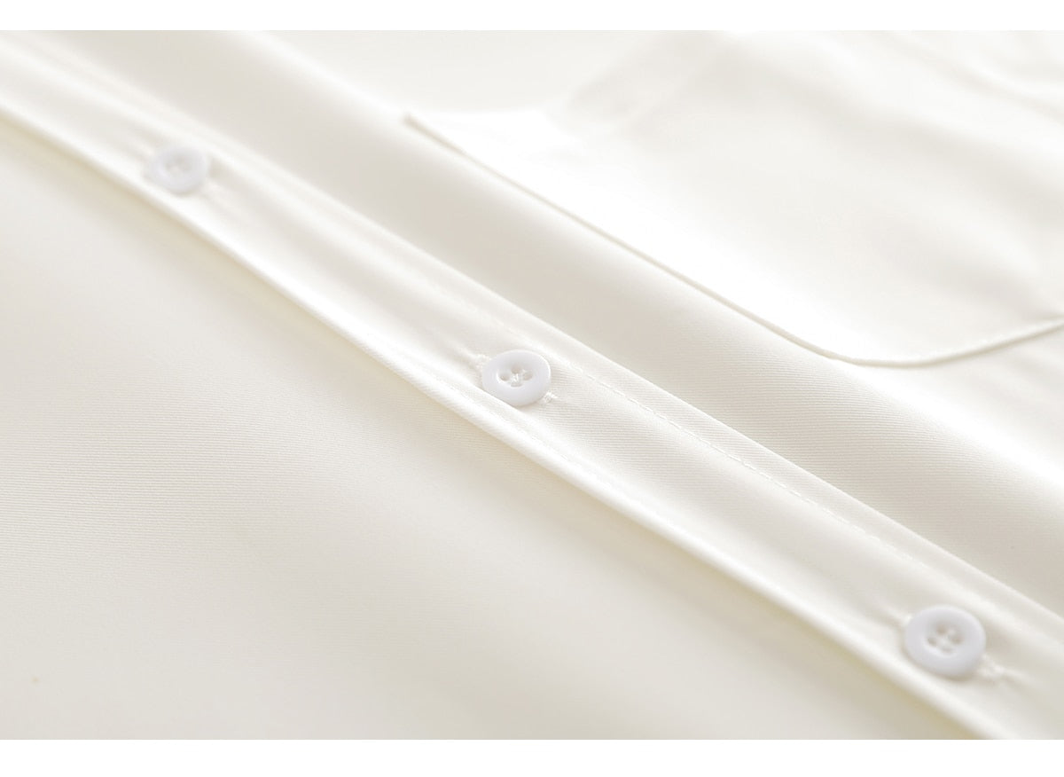 Make a statement with these sleek Basic Oversized Button Down Shirts! Whether you're in black or white. you'll be floating on air in this lightweight. slightly flowy fabric. You'll look classy and casually cool. Basic shirts never go out style. Size up for oversized look.