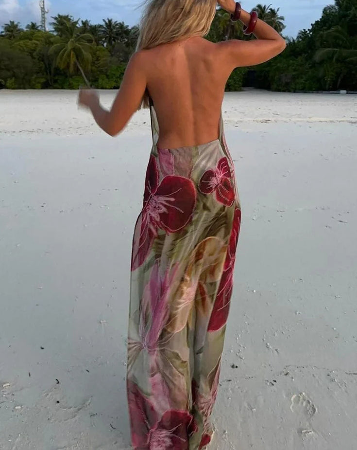 Bead Chain Split Swing Floral Dress