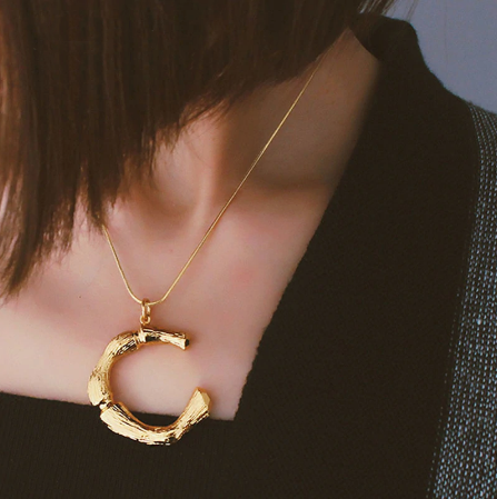 Big Metal Bamboo Pattern Alphabet Necklaces. Cool big alphabet letter pendant necklace in bamboo patterns. As easy as ABC. this initial necklace simply makes a great statement as is or together with other necklaces. Great as a gift!Â
