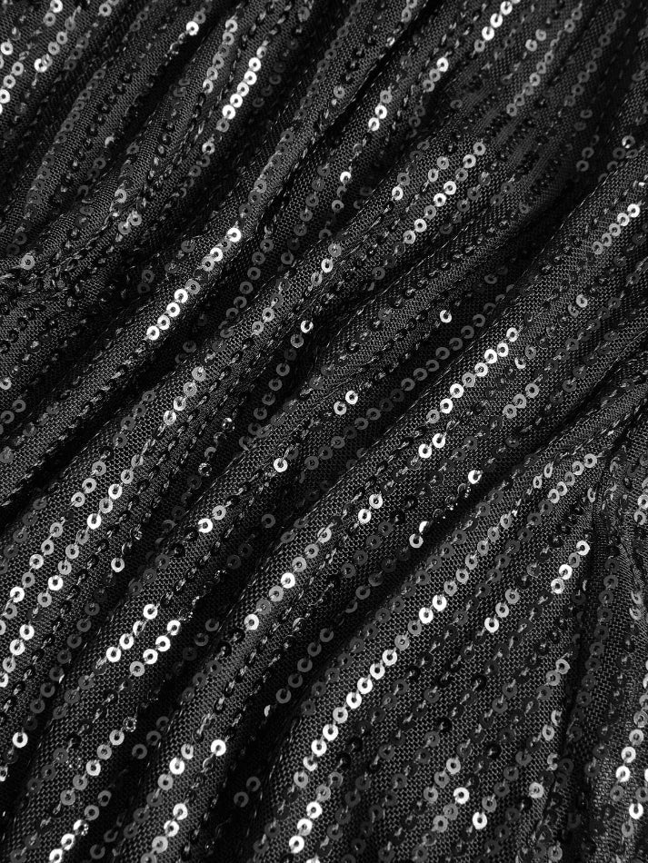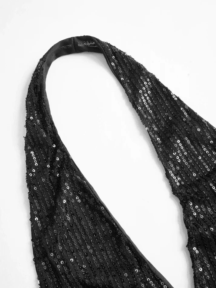 Black Vintage Split Sequin Halter Party Mini Dress