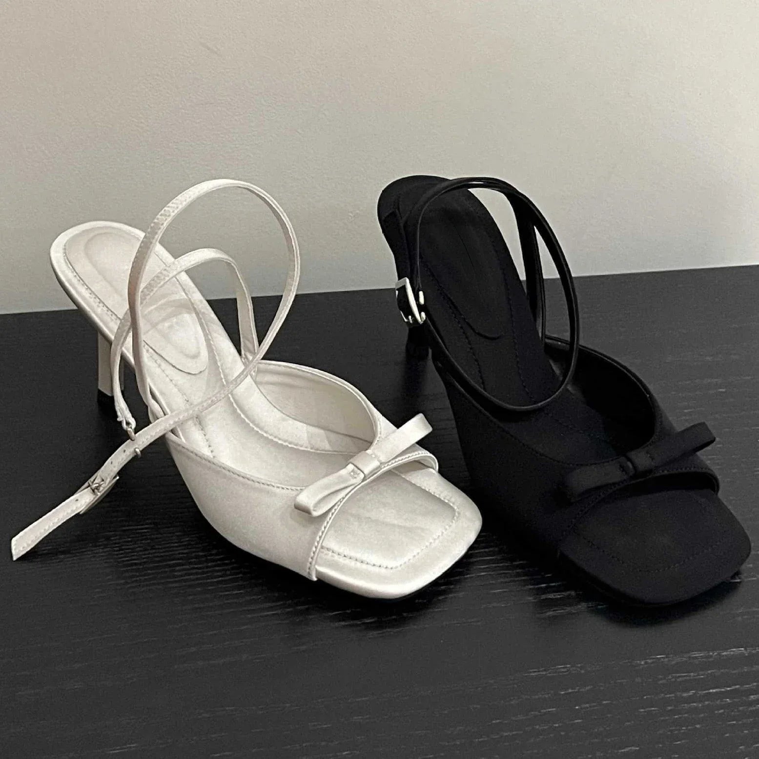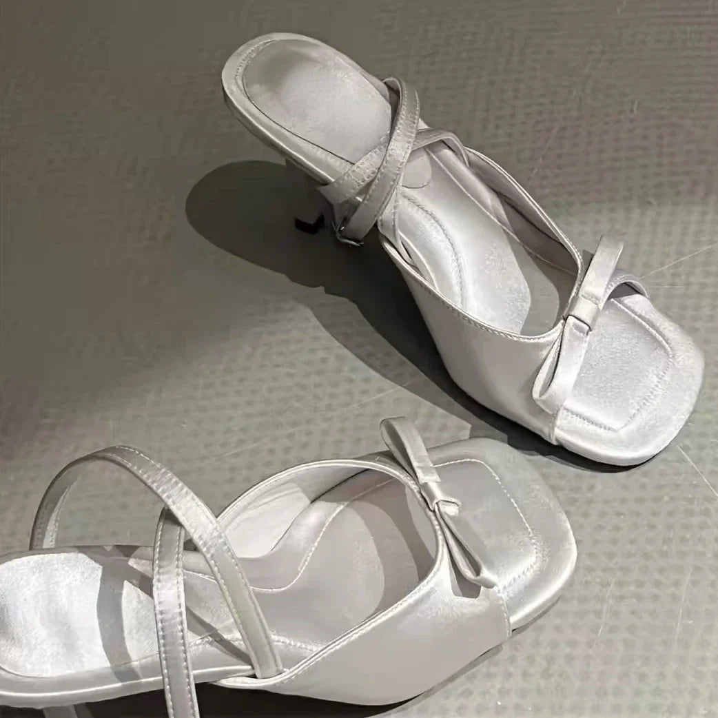 Bow Satin Luxury Designer Ankle Strap Square Toe Pumps High Heel