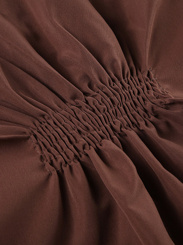 Brown Vintage Slim Fit Pleated Short Sleeve Shirt