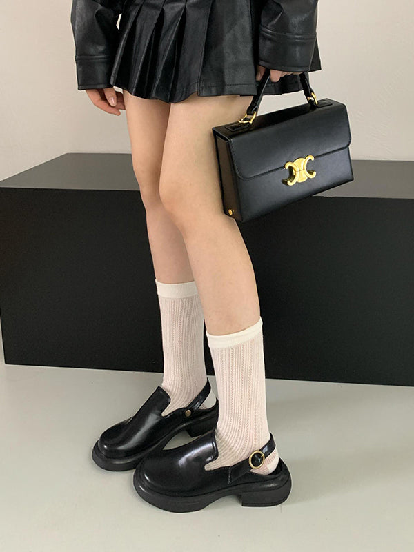 Buckle Round-Toe Split-Joint Loafers Mules&Slides Sandals