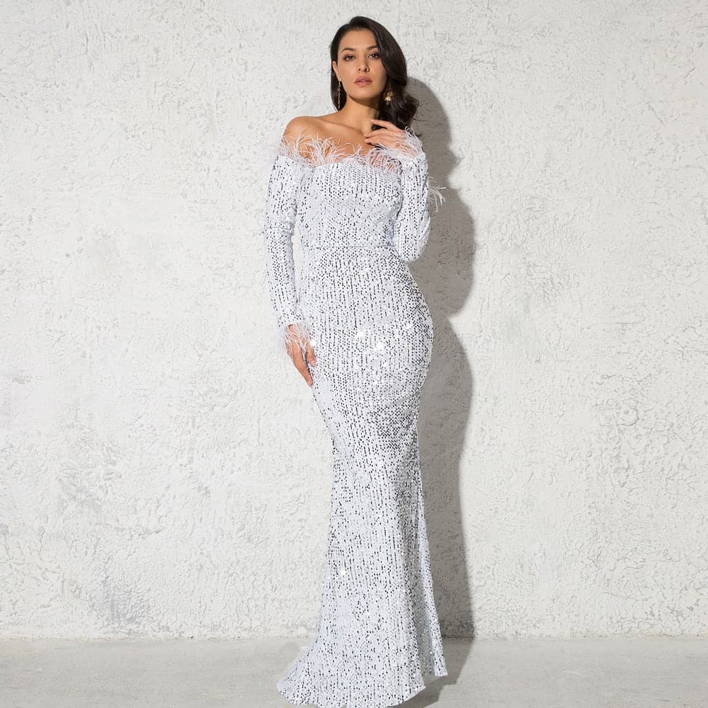Burgundy Shiny Sequin Feather Velvet Party Dress
