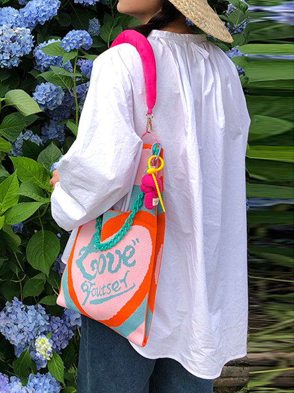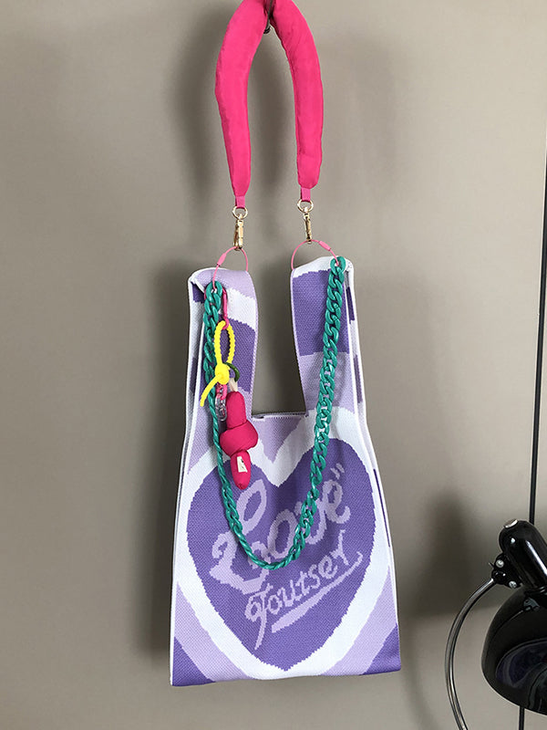 Chains Contrast Color Heart Print Woven Bags Handbags