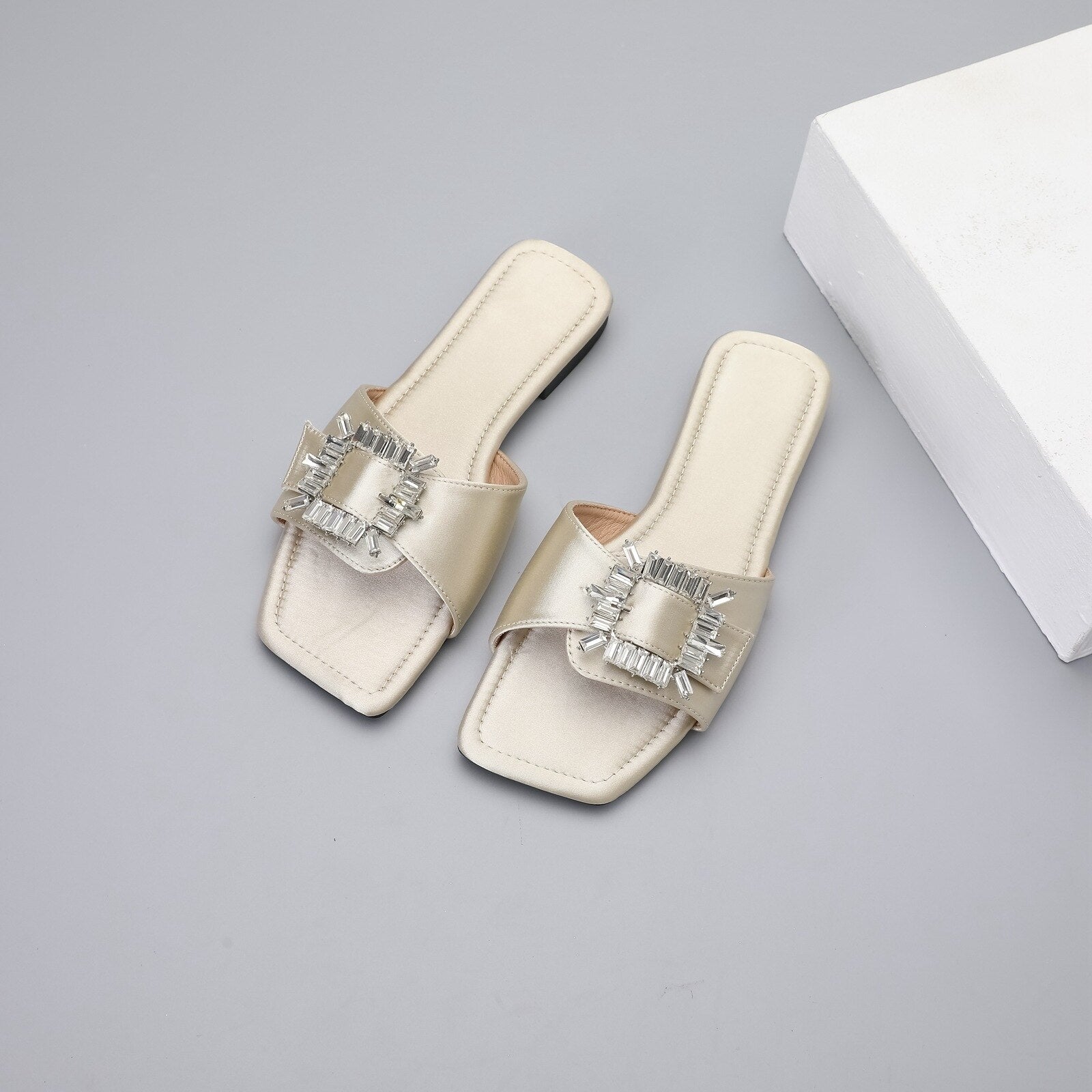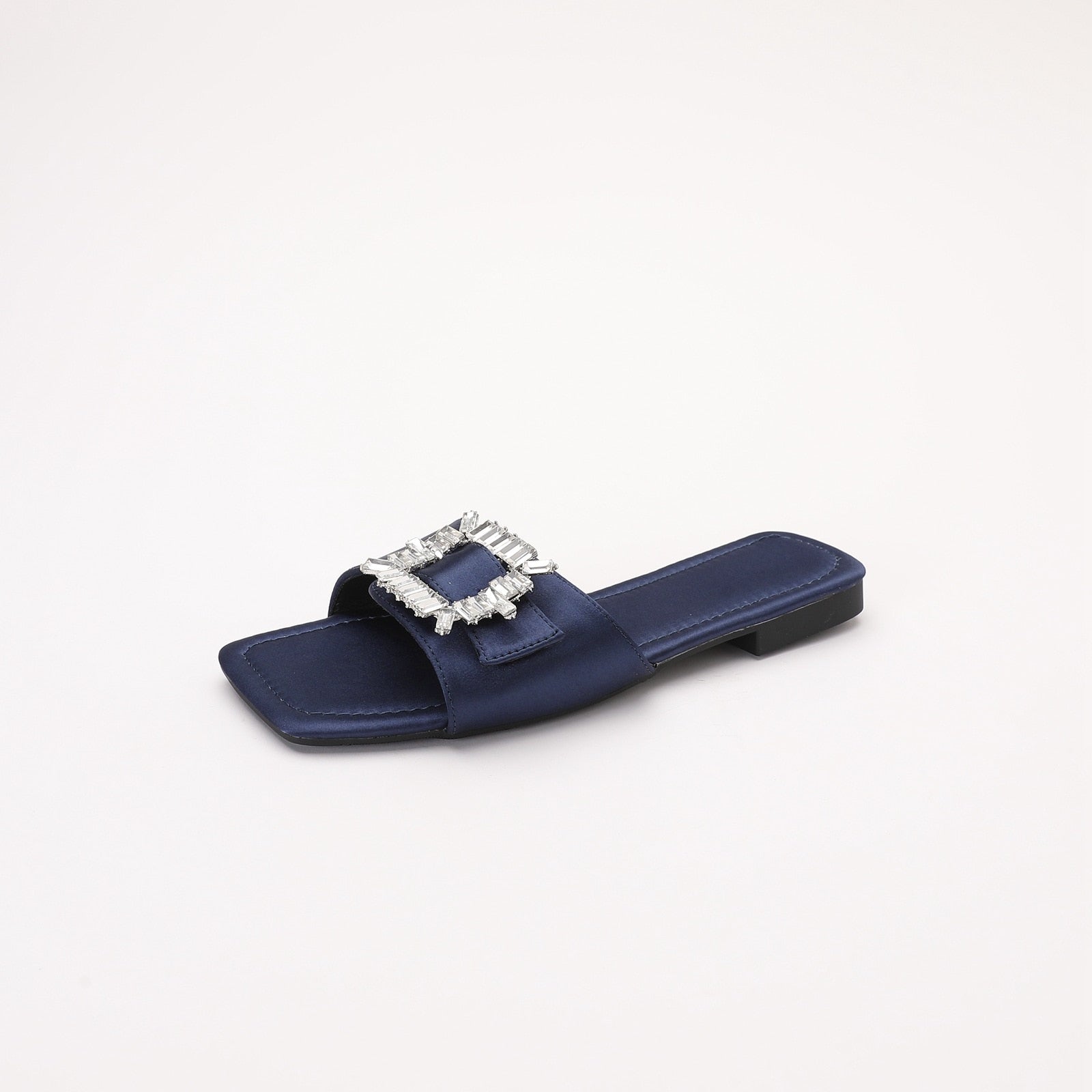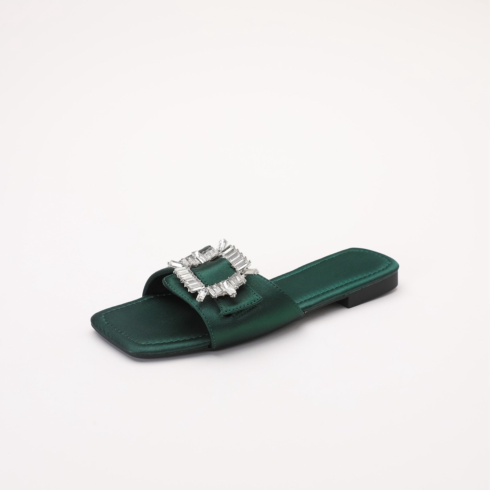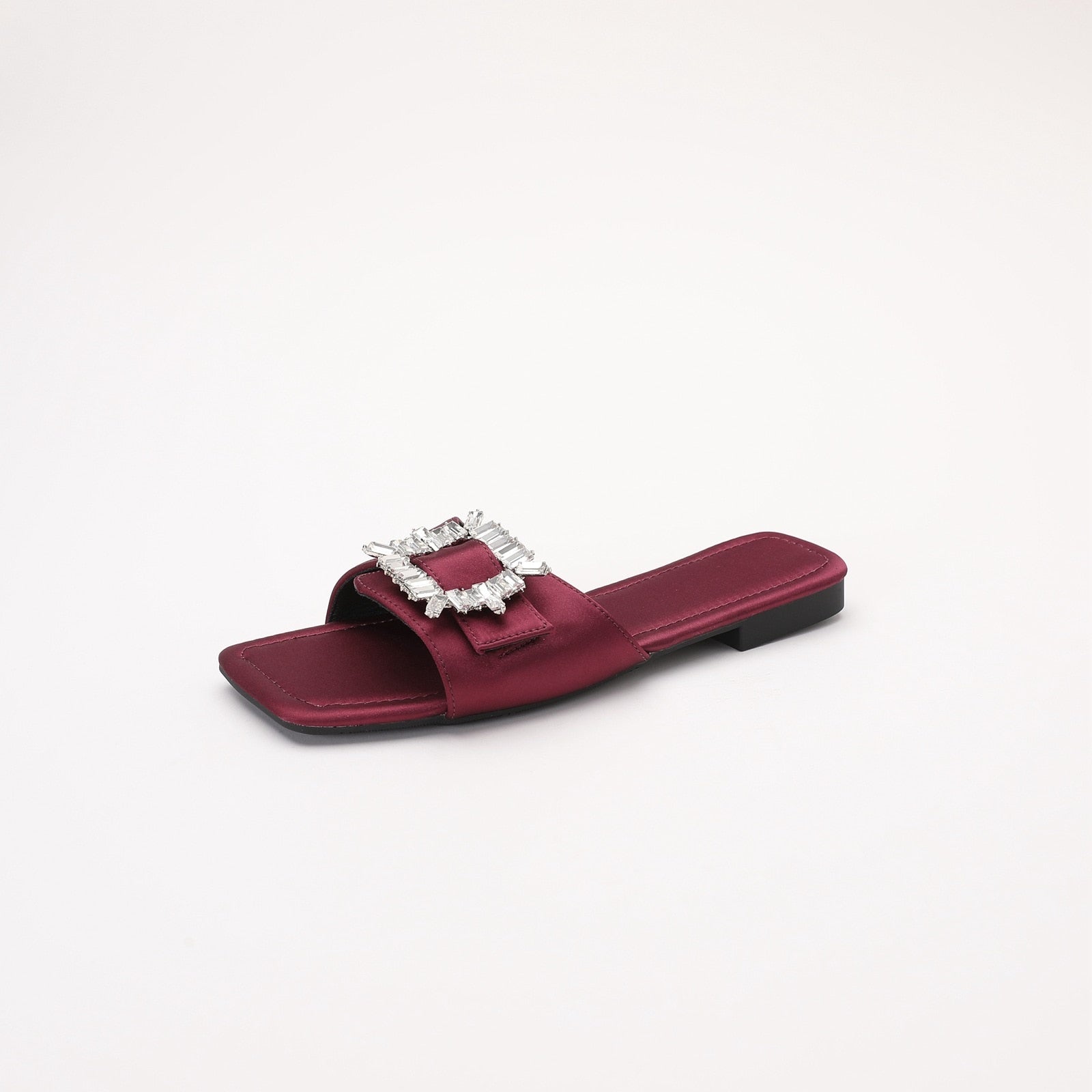 Chaitali Rhinestone Buckled Satin Slippers - 5 Colors