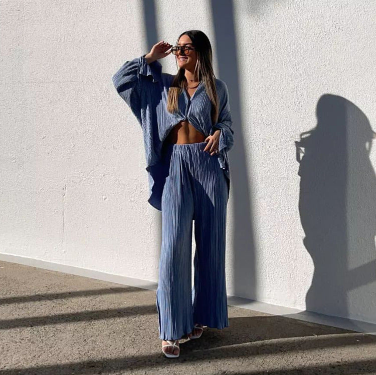 Chiara Solid Color Pleated Pajama Style Sets