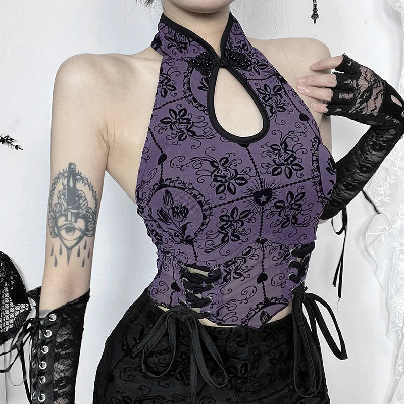 Vintage Elegant Jacquard Bandage Backless Halter Chic Crop Top