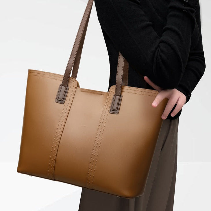 The Christina Genuine Leather Tote Bag is the ultimate choice for those seeking enduring style and convenience! Its simplistic yet elegant design seamlessly matches any outfit. making it an indispensable part of your wardrobe. The top-notch quality of genuine leather adds to its durability and enduring charm. While exuding an air of luxury. this tote remains lightweight. ensuring comfort throughout the day. Exclusively available in khaki.