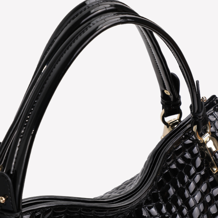 Step out in style with the Christine Genuine Leather Tote Bag! Its crocodile pattern. exquisite details. and elegant design make it a must-have piece that can match any outfit. With its large capacity and high-quality leather material. this tote bag is both practical and sophisticated. This bag will make you feel confident and classy wherever you go! Exclusively available in black.