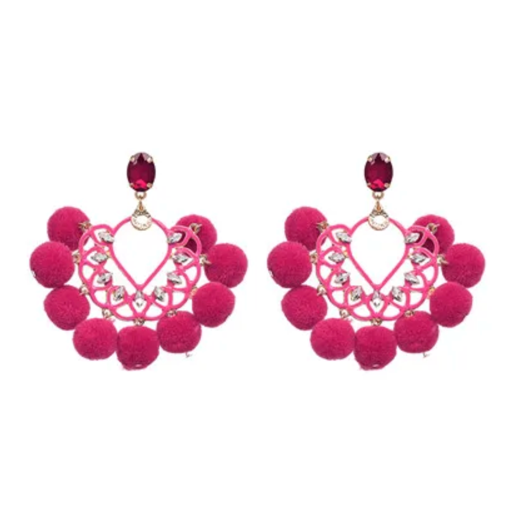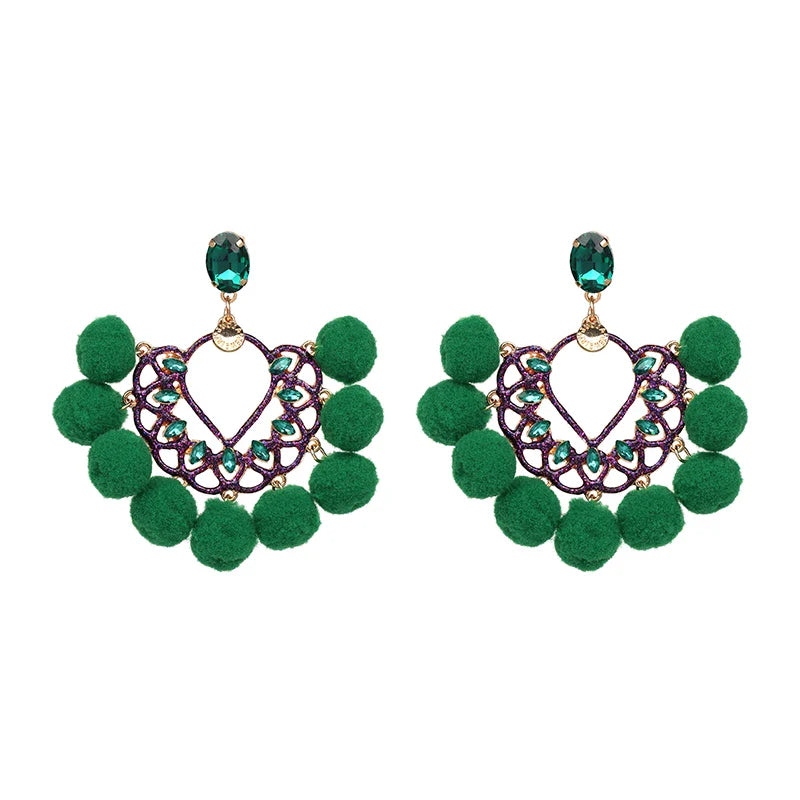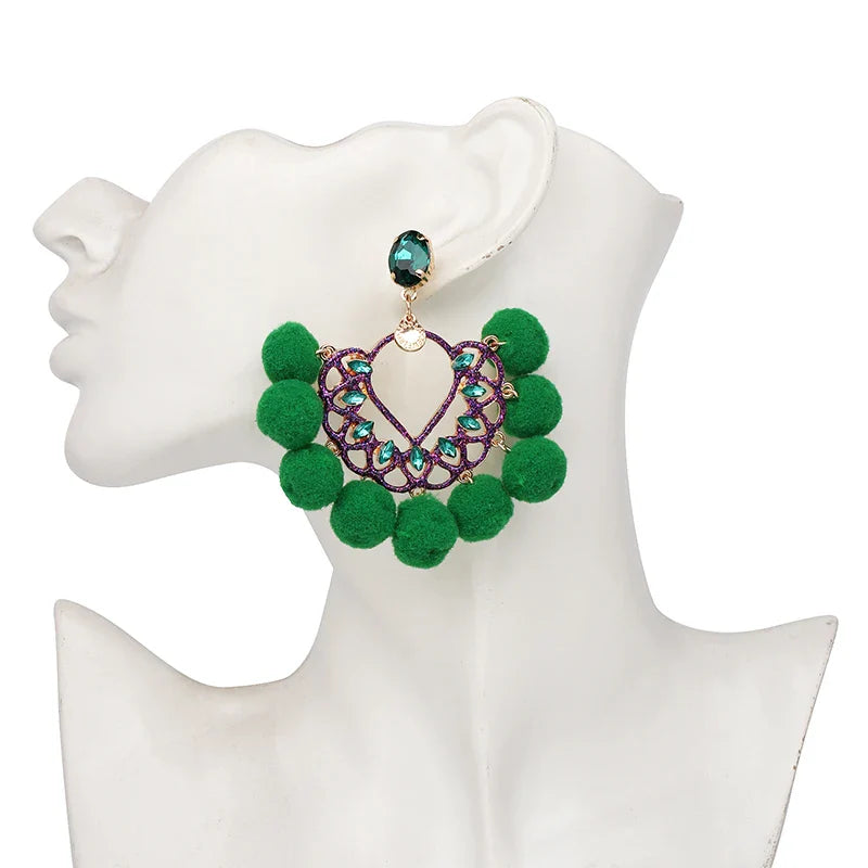 Add a touch of boho chic to your outfit with our Citrine Pom Pom Fan Bohemian Earrings! Get ready to turn heads with these funky and fabulous earrings! These beauties boast a fan or peacock shape adorned with a playful pom pom design and vibrant rhinestones. Perfect for adding a pop of color to any look. (Just don't get them stuck in your hair. OK?)