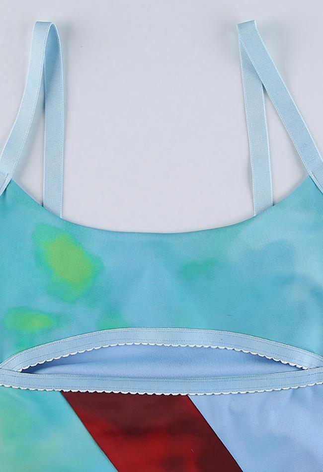 Color Block Y2K Patchwork Striped Cutout Mini Dress