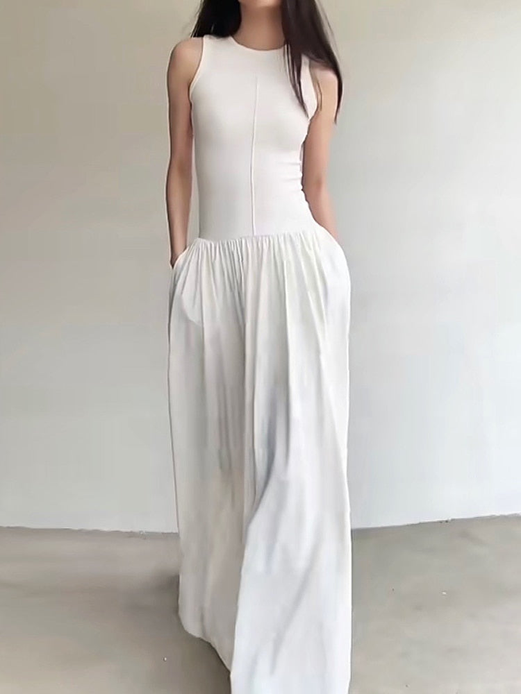 Cora Minimalist Tank and Flare Maxi Dress - 2 Colors. Modern tank top with pretty flaring A-line skirt bottom and pockets. Sporty and elegant at the same time. Â A great piece to style with either casually or dressy.Â