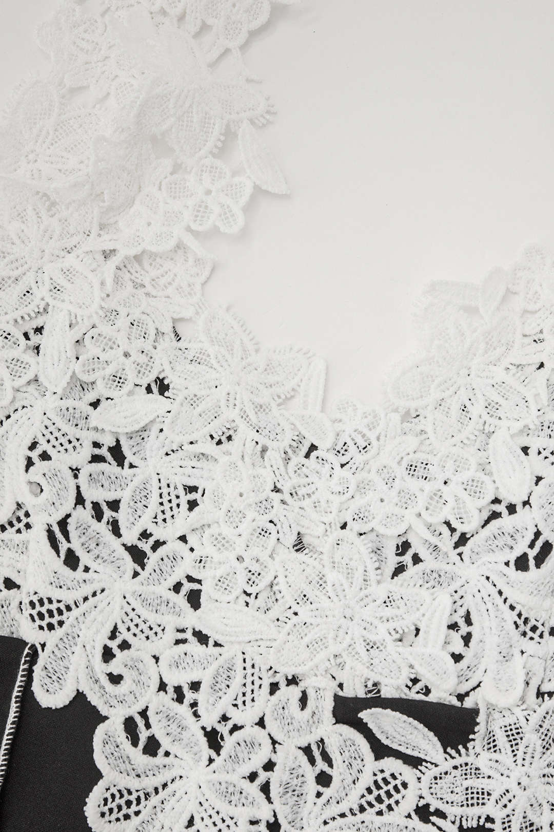Creme Asymmetric Lace Panel Slim Midi Dress