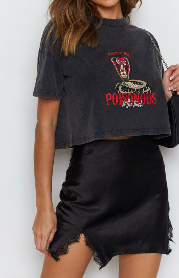 Introducing a sleek black mini skirt that effortlessly transitions from day to night with its chic lace-detailed splits. The satin-like fabric and figure-flattering silhouette add a touch of sophistication to any outfit. making it a versatile staple in your wardrobe.