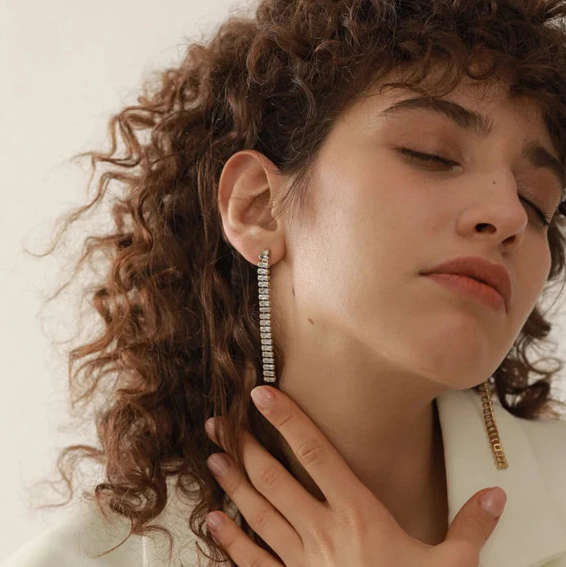 Add a touch of glamour and playfulness to your look with our Dania Long CZ Rhinestone Tassel Earrings! These earrings feature dazzling square cut CZ rhinestones and a fun tassel design. Perfect for adding some pizzazz to your outfit or seamlessly transitioning from day to night.