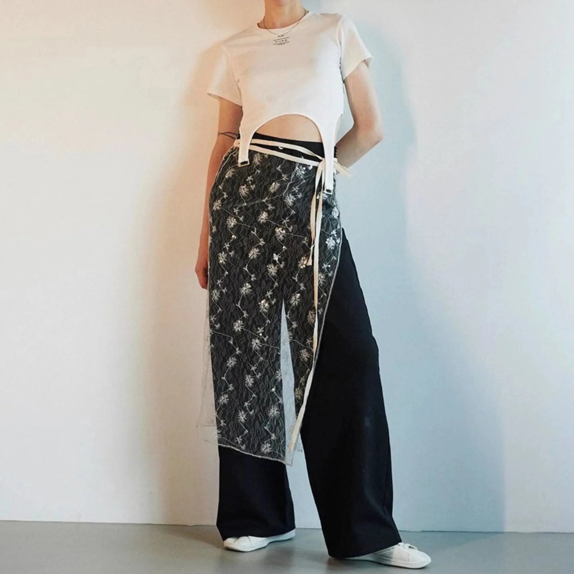 Rock your sassy. carefree side with the Daria Lace Mesh Wrap Apron Skirt. Combining lace and mesh. this skirt brings a flirty and chic overlay to your wardrobe. Perfect for a whimsical touch to any look! Don't hesitate to add this apron skirt to your wardrobe (it's a must-have. trust us)! One Size.