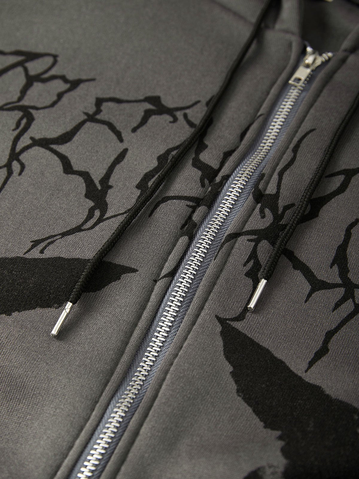 Unleash your inner street style with the sleek zip feature and an iconic Angel Logo that adds a distinctive and edgy flair to the hoodie. Whether you're strolling through the city or hanging out with friends. this Dark Grey Hoodie effortlessly merges casual comfort with street-smart appeal. making it a wardrobe essential for those who appreciate both style and ease.