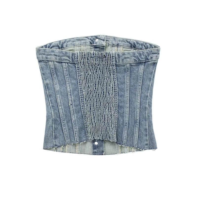 Deena Denim Tube Tops - 3 Styles. Stylish denim tube tops in 3 different styles to love. Â Short. long or cup styles. Great alone or as layered style. Button up and down. Elastic shirring back.
