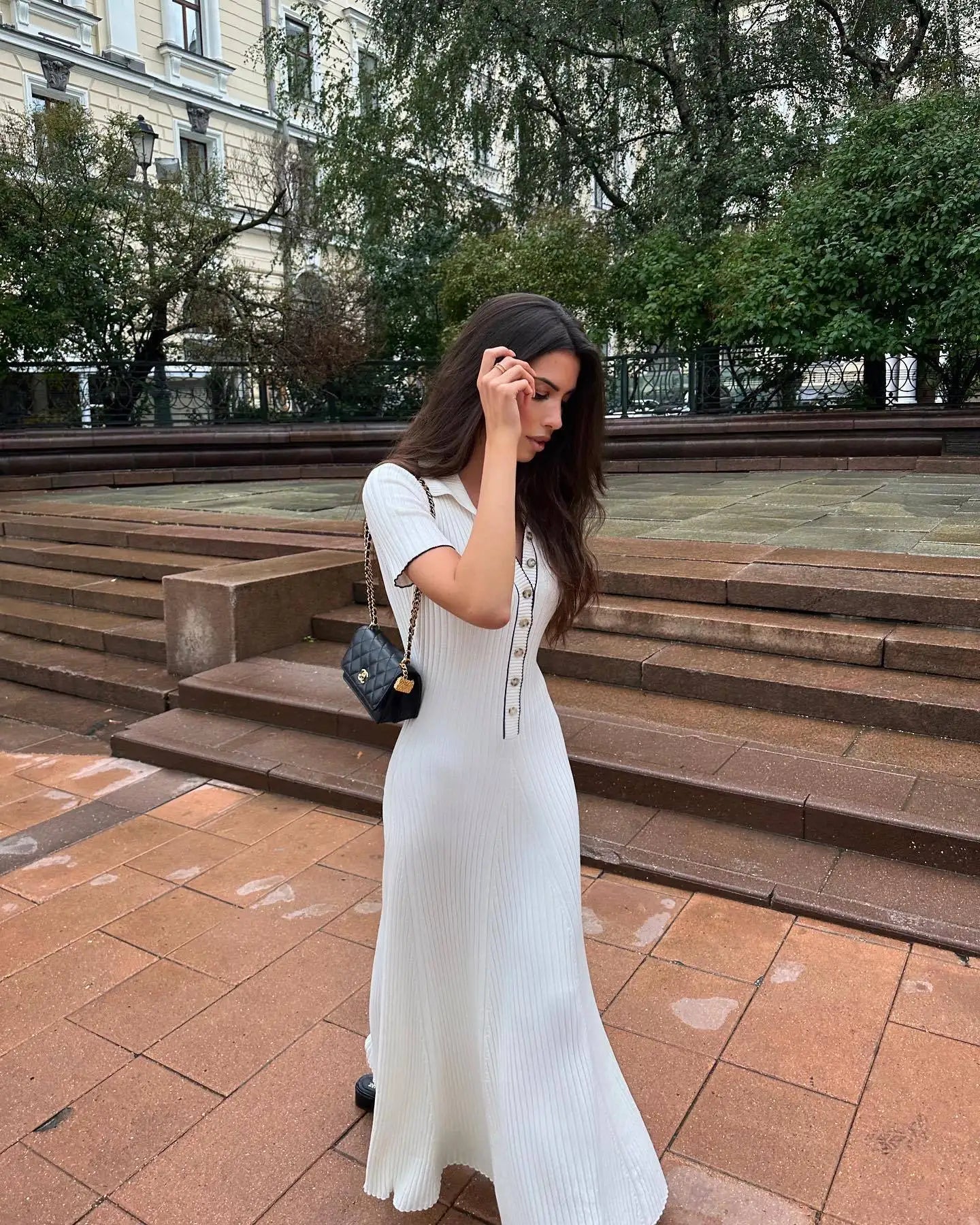Denim Patchwork Knitted Short Sleeve Button Work Dress