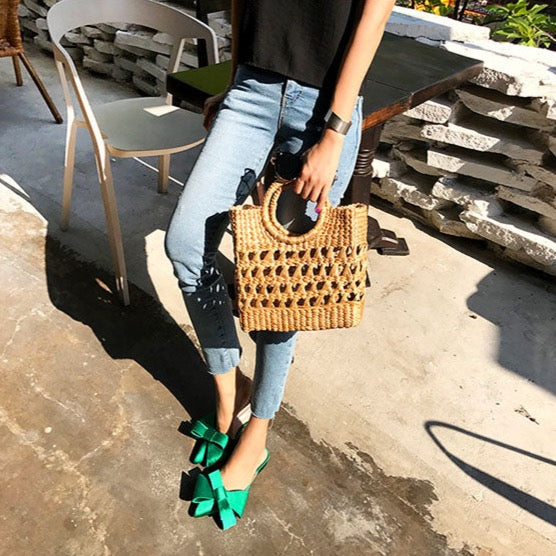 Dianna Silk Satin Pointed Big Bow Tie Slippers - 5 Colors. Lovely silk satin slide slipper with fashionably big bow ribbons in vivid solid colors. Wherever you go you will not go unnoticed. Being flat height. these slippers are versatile in styling - casually with jeans or dress it up for special events like wedding!
