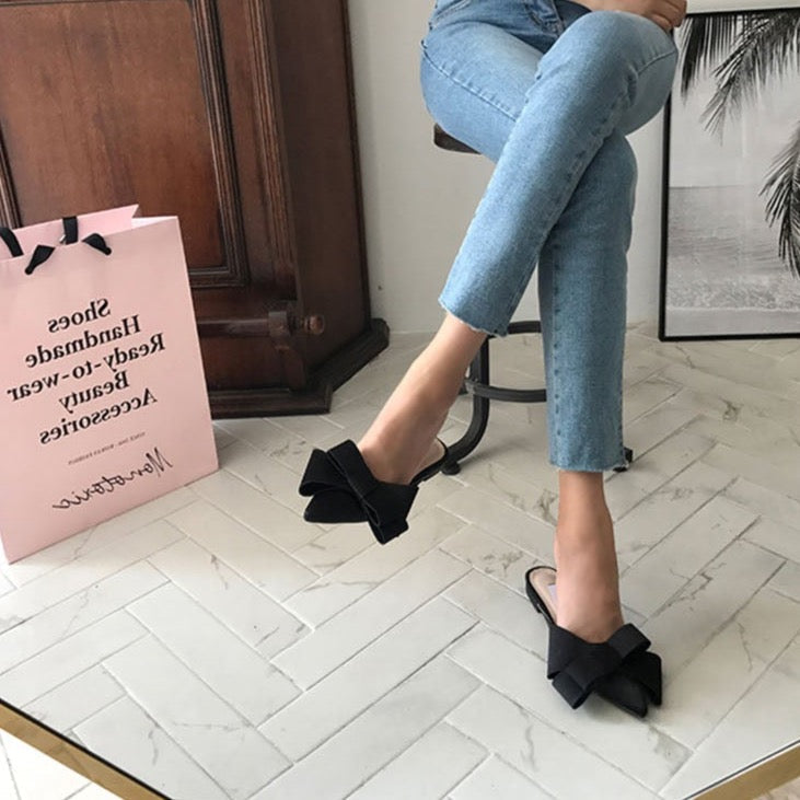Dianna Silk Satin Pointed Big Bow Tie Slippers - 5 Colors