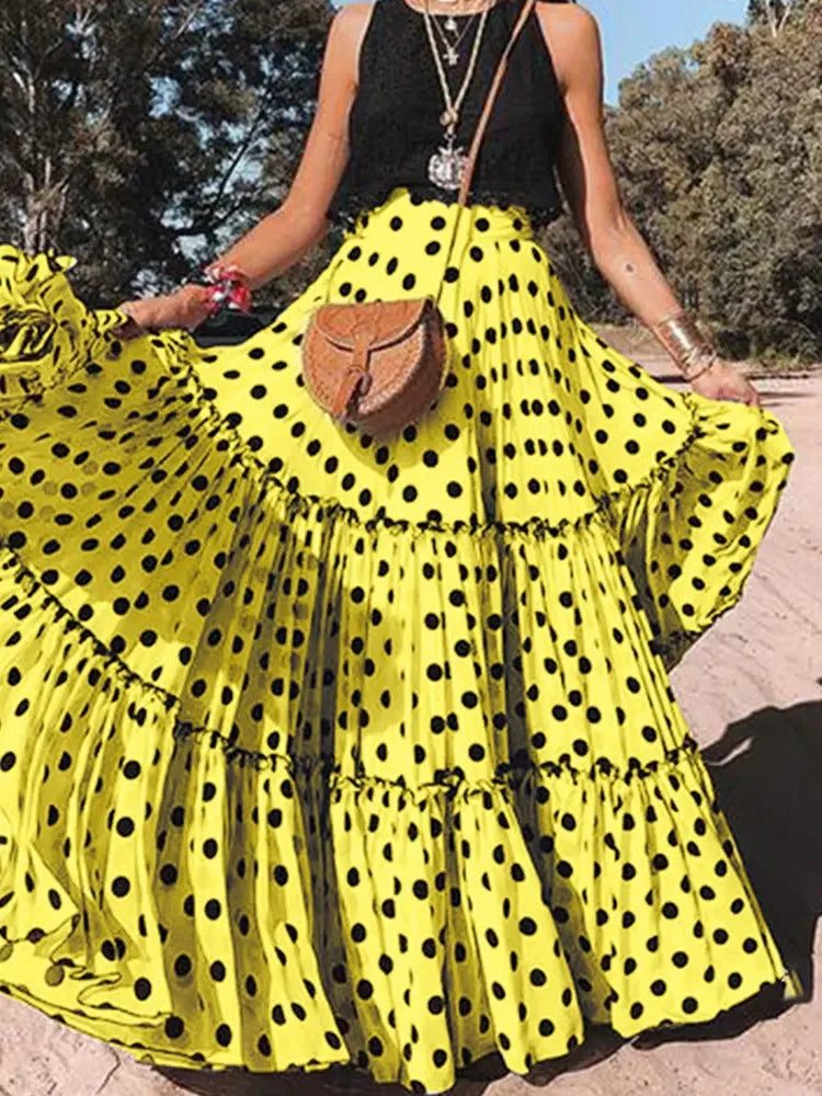 Vintage Bohemian Fairy Maxi Ruffle Polka Dot Skirt