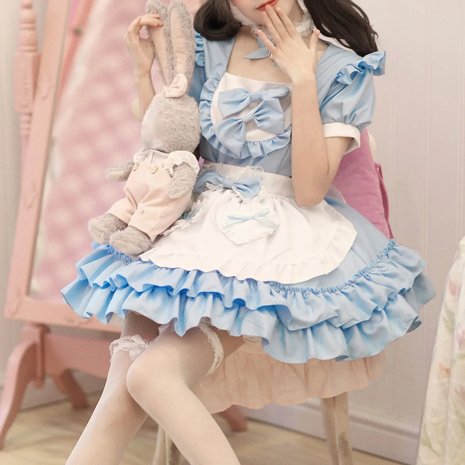 Elegant Cute Kawaii Lolita Maid Uniform Set Japanese Harajuku Y2k Cosplay Women's Dress