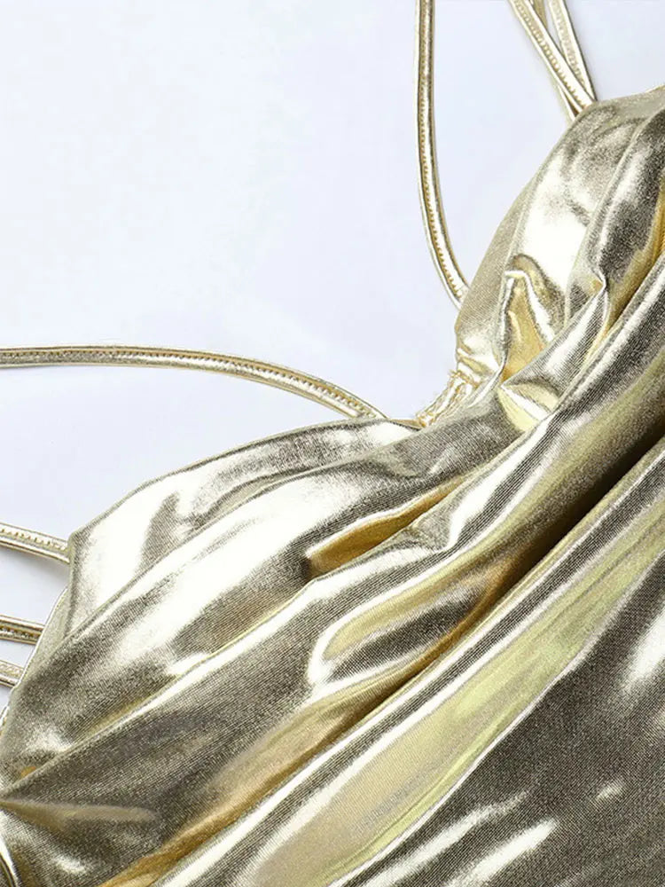 Elegant Gold Spaghetti Strap Backless Maxi Dress