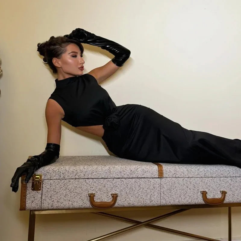 Elegant Hollow Back Sleeveless Turtle Neck Christmas Party Dress