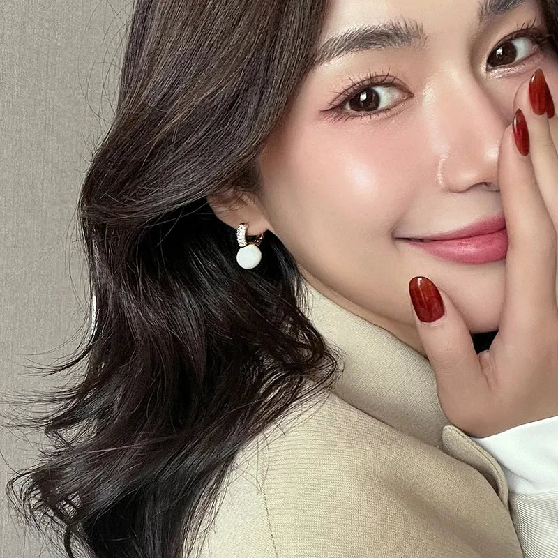 Elegant Marble Ball Drop Earrings - Green or Pearl