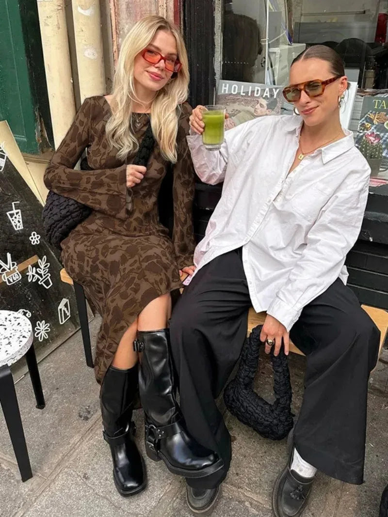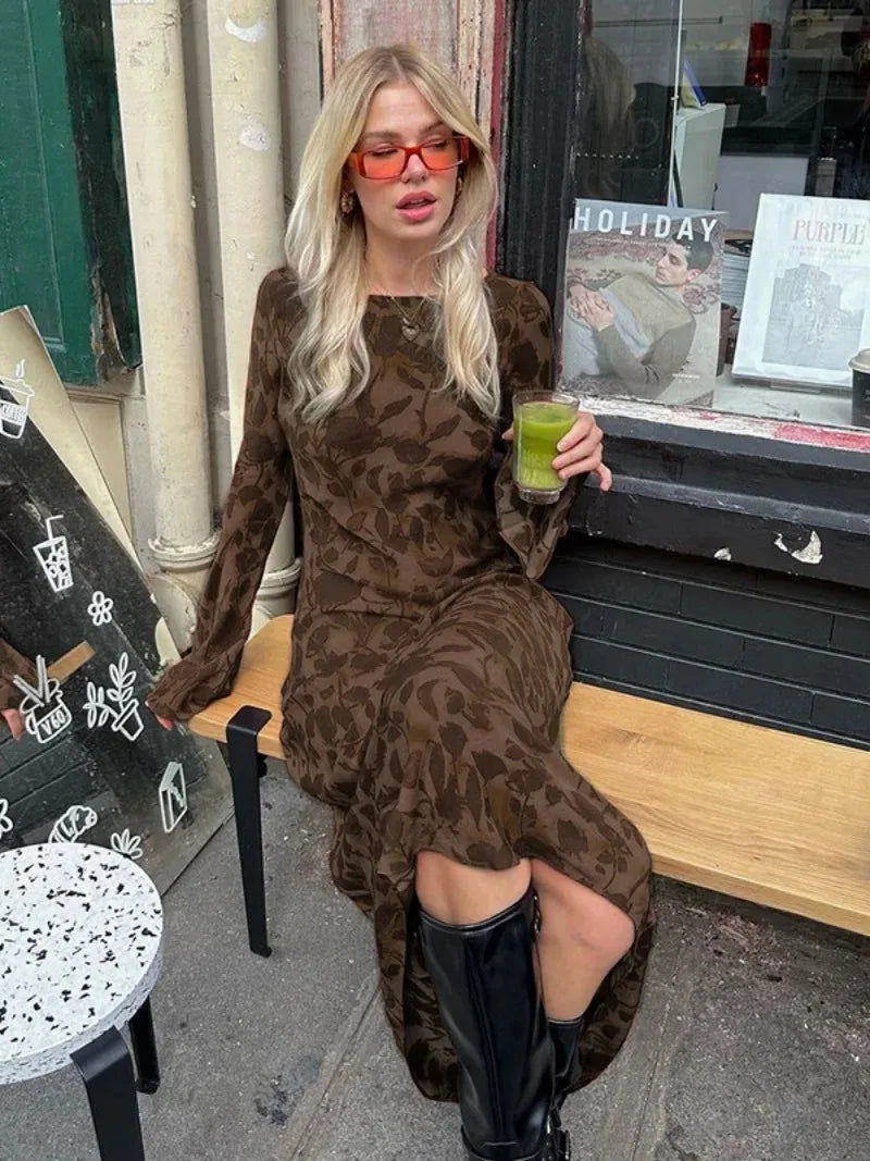 Elegant O-neck High Waist Evening Party Streetwear Maxi Dress