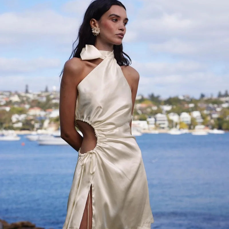 Elegant Sleeveless Flower Slim Shoulder Silk Dress