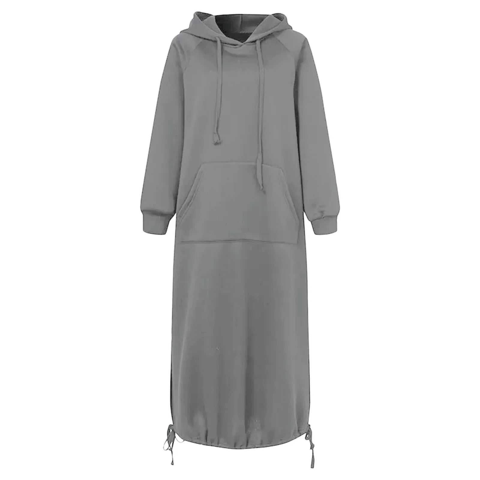 Elegant Split Hooded Large Pullover Casual Autumn Pocket Warm Sweatshirt Fashion Hoodie Dress