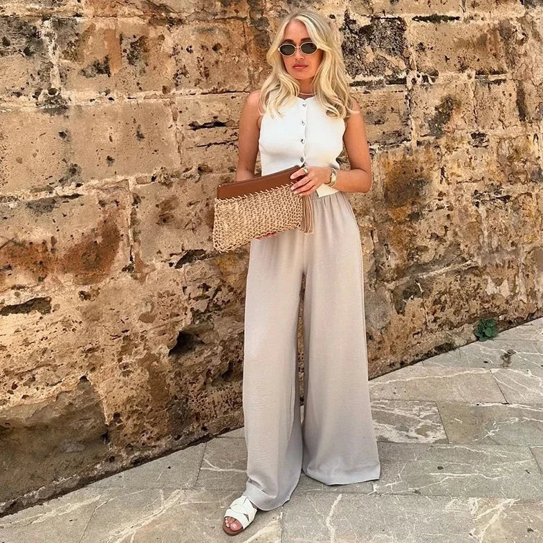 Stay cozy and stylish with our Elina Knitted Vest Cropped Top. Made with the knit materials with trendy vest design with cool pebble silver button. this top will keep you looking effortlessly chic. Pair with jeans. trousers or skirt. you are ready to rock!Â