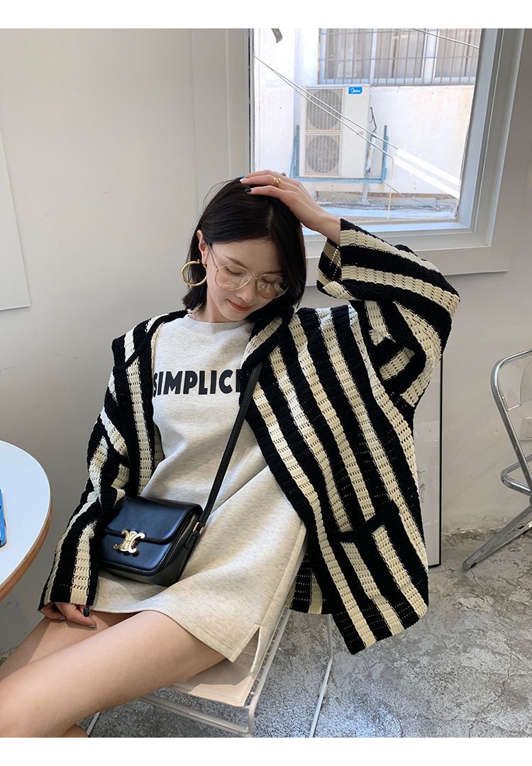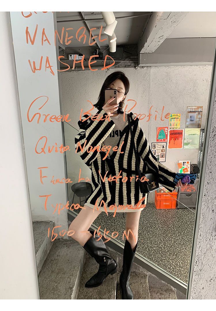 Emica Vertical Stripe Hooded Knit Cardigan Jumper