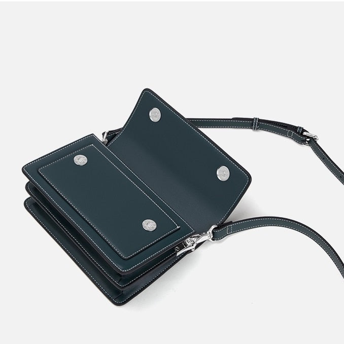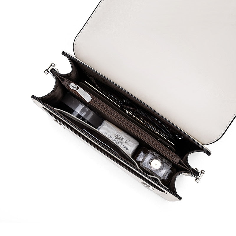 Estelle Elk Shoulder Bag - 2 Colors. Luxe look leather shoulder bag with elk rivet face hardware. Structured box body with 2 briefcase compartment and flap cover. Elegant and stylish. Genuine leather.