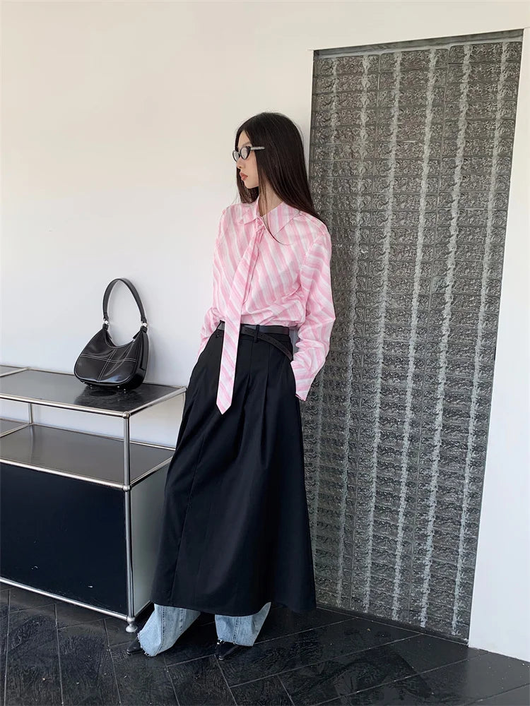 Get ready to stand out in style with the Eugina Pink Striped Necktie Dress Shirt! With its eye-catching pink stripes and elegant necktie. this shirt is perfect for fashionista gone office look. The perfect combination of fun and sophistication. you'll be sure to make a statement wherever you go. Don't miss out on this must-have piece for your wardrobe!
